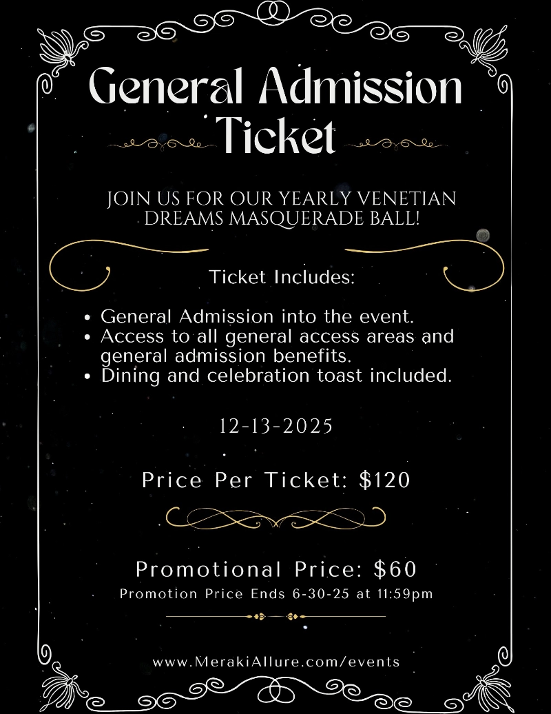 VIP DIAMOND - Early Access to Fashion Show. First pick pre-order on all New Products revealed. VIP Seating & certain areas for the Fashion Show. Complimentary Drinks at the event (limit 2 per guest). 20% Off all products and services. +Hair/makeup/styling consultation for the Fashion Show event. ++Due to consultation times on hair and makeup, VIP ticket purchase must be in by 11-30-25 +Professional Photos & Videos taken at the event. ++Complimentary Ready To Wear Suit / Dress for the event.